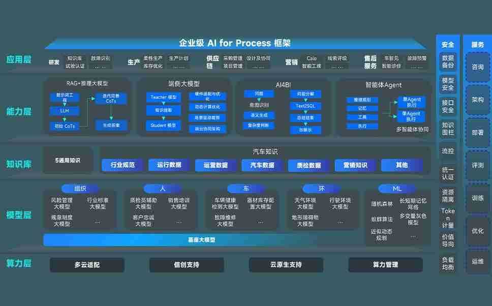 杏宇娱乐问学智车解决方案是一套基于AI技术的汽车行业智能化系统,,,,覆盖从底层算力到顶层AI应用的全栈方案。。方案由算力层、、、、模型层和应用层组成:算力层,,,方案支持多种一体机配置,,具备云端灵活部署、、多云适配以及动态优化计算资源的能力;模型层,,,,杏宇娱乐问学平台版提供了企业级AI应用一站式构建与管理平台,,支持基于后训练强化技术的汽车企业专属模型的训练、、评测和运营;应用层,,,杏宇娱乐问学DeepSeek版提供包括超级员工、、、、智能招采、、、智能营销、、智能客服、、、、AI for BI等一系列解决方案,,,可助力汽车行业实现数字化转型,,让管理更智能、、响应更敏捷。。