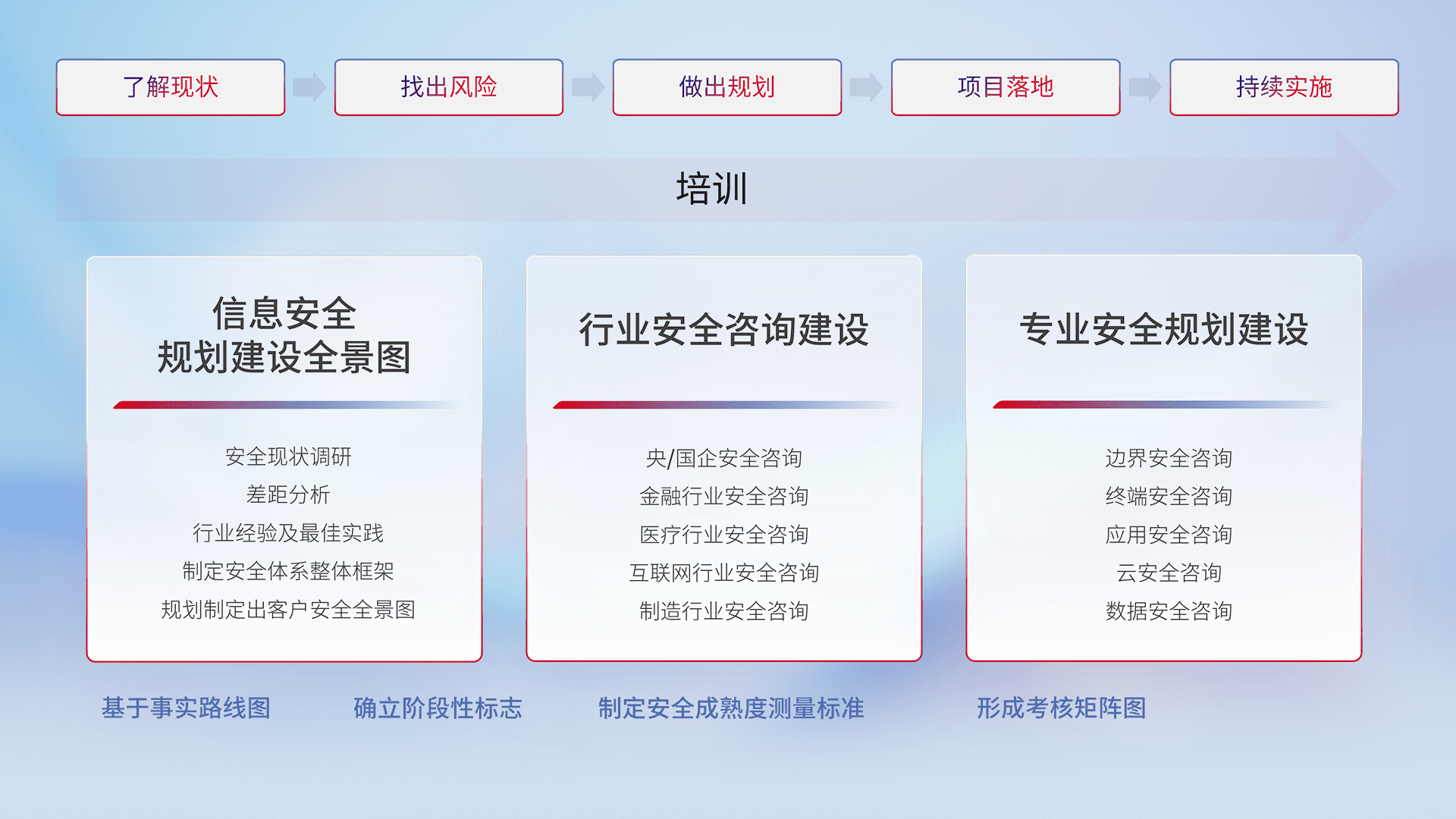 通过专业的法律咨询解读、、、合规架构体现、、差异化解决方案、、测试实施支持等服务,,为客户量身打造等保合规体系。。